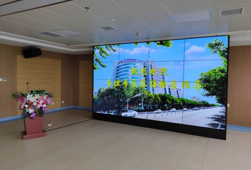 濰坊醫(yī)學(xué)院眼科中心這套大屏采用4x4拼接、55寸3.5mm液晶拼接屏,用于會(huì)議信息顯示。