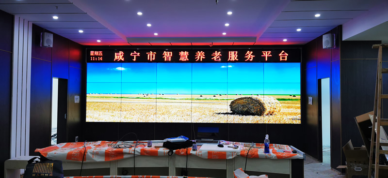 近日,維康國際為咸寧市民政局旗下養(yǎng)老院提供一套大屏幕顯示設(shè)備,這套大屏采用3x6拼接、49寸LG液晶拼接屏,拼縫僅有1.8mm,畫面清晰亮麗,有著很好的一體化顯示效果。