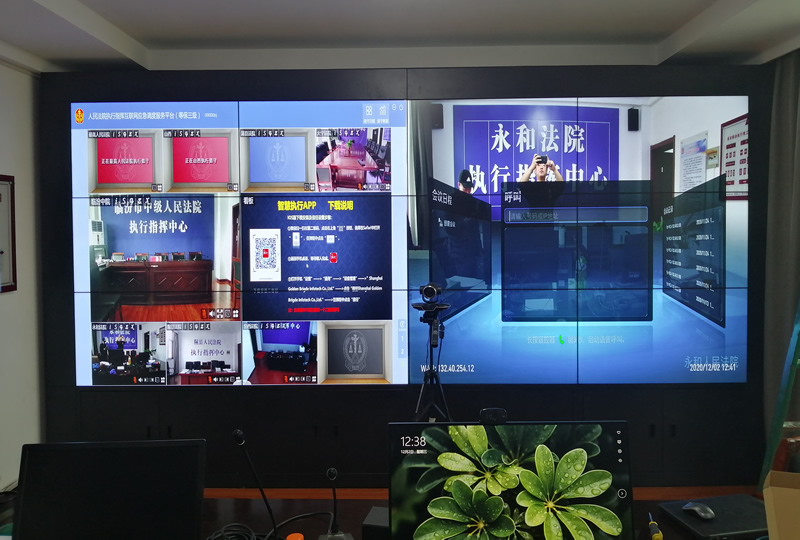 本案例中,維康國際為永和人們法院提高一套視頻會議顯示屏,主要由3行4列、55寸3.5mm液晶拼接屏組成,主要用來視頻會議顯示使用,大屏畫面高清顯示,產品性能穩(wěn)定。
