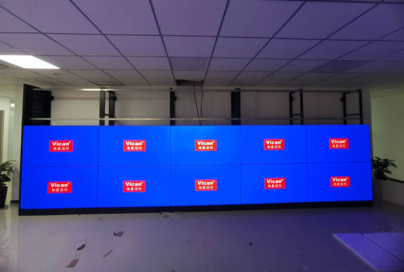 本案例中,維康國(guó)際為濟(jì)寧市汶上縣某學(xué)校提供一套會(huì)議室大屏,采用3行5列、55寸液晶拼接屏,雙邊拼縫為3.5mm,大屏幕顯示清晰、一體化顯示效果較好,圖上圖所示。