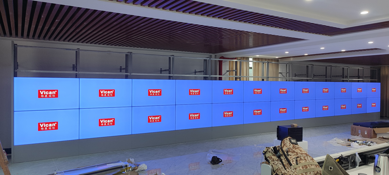 本案例中,維康國際為廣西興業(yè)縣某單位提供一套指揮中心大屏,采用3行12列、55寸液晶拼接屏,拼縫為3.5mm,大屏幕顯示清晰亮麗、性能穩(wěn)定,支持24小時全天運行的工作模式。