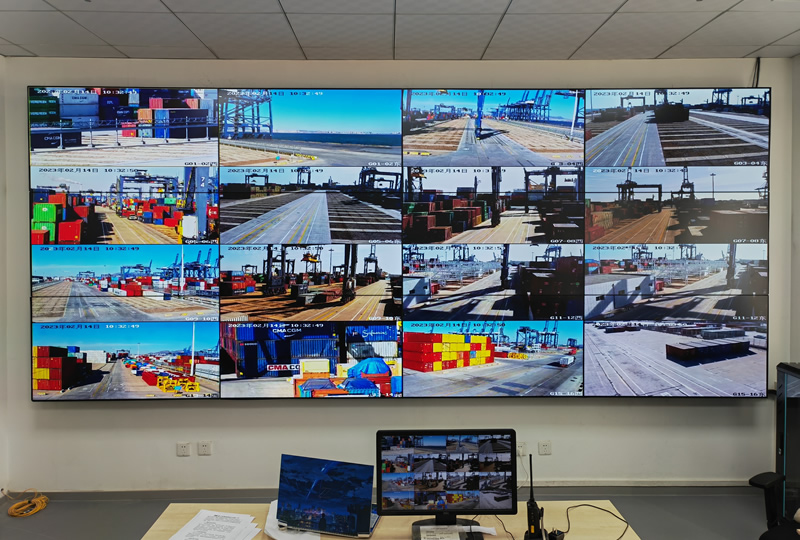 本案例中,維康國際為大連碼頭集裝箱公司提供一套監(jiān)控大屏,采用3行4列,55寸液晶拼接屏,1.7mm工業(yè)級液晶面板,大屏幕顯示清晰,性能穩(wěn)定。