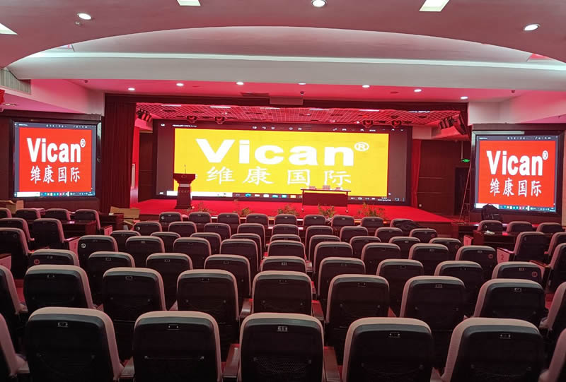 本案例中,維康國際為濟南市世紀(jì)金榜集團提供一套會議廳顯示屏,如上圖所示,大屏幕顯示清晰,超大尺寸,視覺效果好。