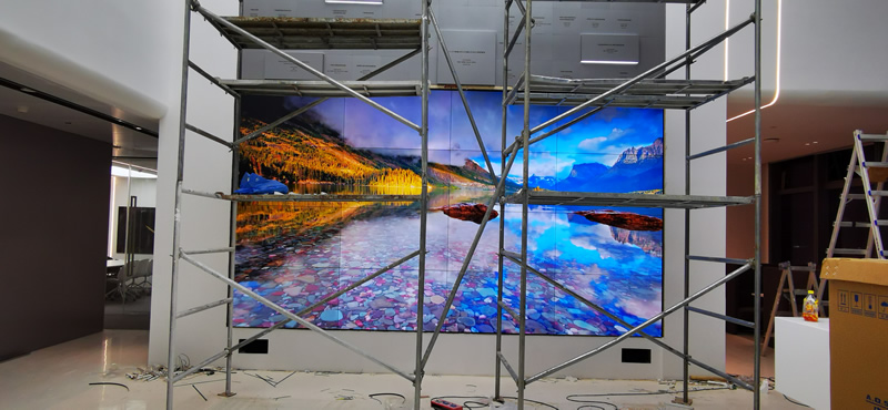 本案例中,維康國際為深圳影石創(chuàng)新公司提供一套展廳LCD大屏,由4x4拼接、55寸液晶拼接屏組成,屏體采用0.88mm窄邊LG面板,大屏幕顯示清晰,一體化效果好。