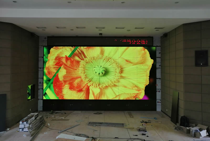 這套5x6會議大屏安裝在淄博某水利局,采用55寸液晶拼接屏,雙邊拼縫為3.5mm,主要用來做信息數(shù)據(jù)顯示。大屏畫面總長度約:7.28米,高度約:3.42米。