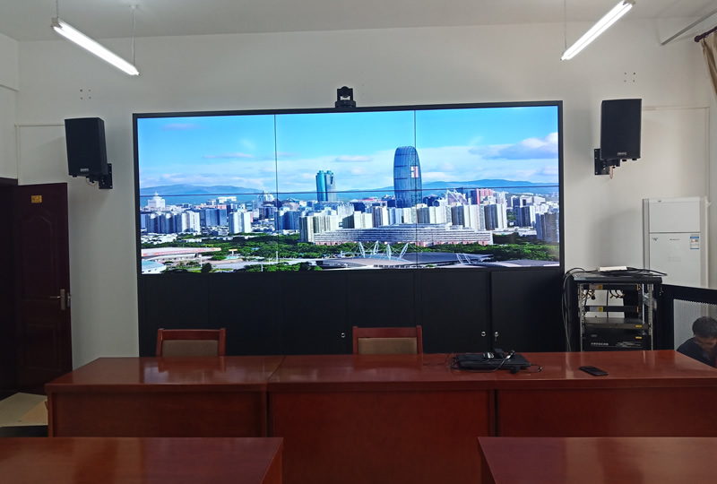近日,維康國際為天津某糧食儲(chǔ)備庫提供一套會(huì)議室液晶拼接屏,采用2x3拼接、55寸液晶拼接屏,1.7mm拼縫,機(jī)柜式安裝,主要用來視頻會(huì)議及信息顯示使用。
