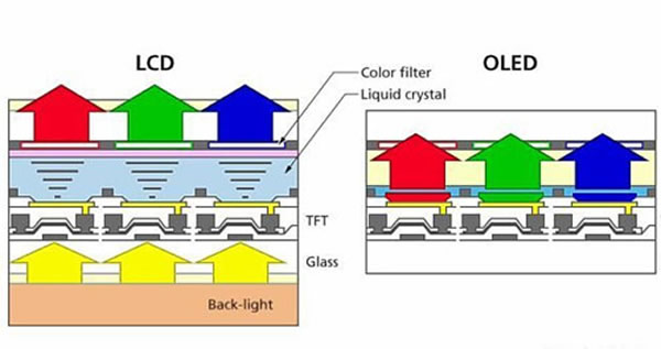 OLED有機(jī)材料層很薄,響應(yīng)速度快、色域?qū)?,可以?shí)現(xiàn)柔性顯示,但有機(jī)發(fā)光材料容易與環(huán)境中的水氧發(fā)生反應(yīng),而使得器件失效,使用壽命相對(duì)較短。