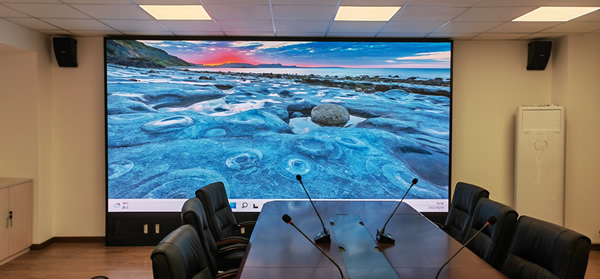 在中小型會議室中,較多的客戶會選擇拼接屏,因為拼接屏的分辨率高,在近距離的觀看效果更好(LED顯示屏在近距離觀看會有顆粒感)。