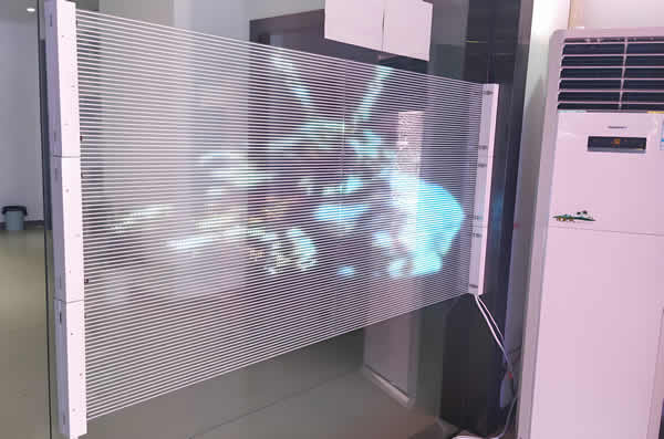 這是一款普通的透明屏,用的也比較多,它的優(yōu)點(diǎn)是價格便宜,不過它的顯示效果一般,在戶外與室內(nèi)場合都可以使用,可以裝在商場櫥窗玻璃的后面,也可以安裝在戶外幕墻上,通過拼接成一個超大屏幕顯示。