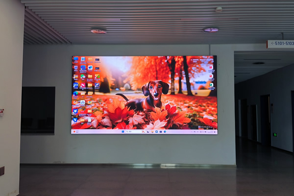 采用模塊化顯示單元(LED顯示屏 / 液晶拼接屏)構(gòu)建標(biāo)準(zhǔn)矩形陣列,常見(jiàn)的液晶拼接屏規(guī)格包括 2×2、3×3、4×4 等組合模式,而LED顯示屏的模組尺寸小,拼接更靈活。在政府會(huì)議中心、企業(yè)報(bào)告廳等場(chǎng)景中,該方案通過(guò)統(tǒng)一的邊框設(shè)計(jì)與色彩校準(zhǔn),實(shí)現(xiàn) PPT 演示、視頻播放等內(nèi)容的高清展示。其優(yōu)勢(shì)在于工程實(shí)施難度低、維護(hù)成本可控。一般情況下,LED顯示屏比較適用于以單一內(nèi)容展示為主的傳統(tǒng)會(huì)議場(chǎng)景;在異形畫面展示、多源信息分屏呈現(xiàn)時(shí)液晶拼接屏更適合。