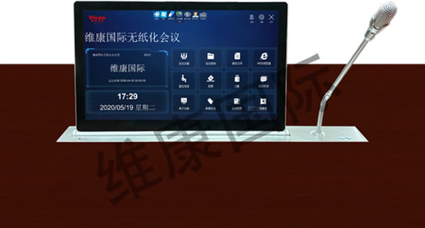 無紙化會議系統(tǒng)是使用現(xiàn)代通訊技術(shù)、音頻技術(shù)、視頻技術(shù)、軟件技術(shù),通過文件的電子交換實(shí)現(xiàn)會議的無紙化。其特征是:文件傳輸網(wǎng)絡(luò)化,文件顯示電子化,文件編輯智能化,文件輸入輸出可控化。無紙化會議系統(tǒng)的一個(gè)基本特征是:會議室設(shè)有公共視頻顯示的大屏幕和每個(gè)席位單獨(dú)控制和使用的席位顯示器,選擇席位顯示或稱異步顯示時(shí),由與會者自行操作該無紙化會議終端,同時(shí)無紙化會議終端如同一臺獨(dú)立使用的標(biāo)準(zhǔn)計(jì)算機(jī),每個(gè)參會者可以自主地在顯示公共信號的同步顯示或異步顯示之間一鍵切換。