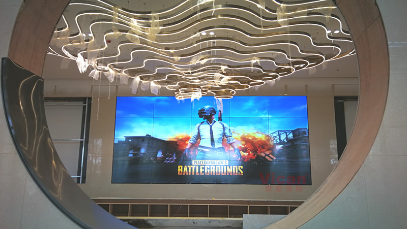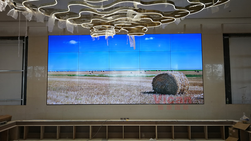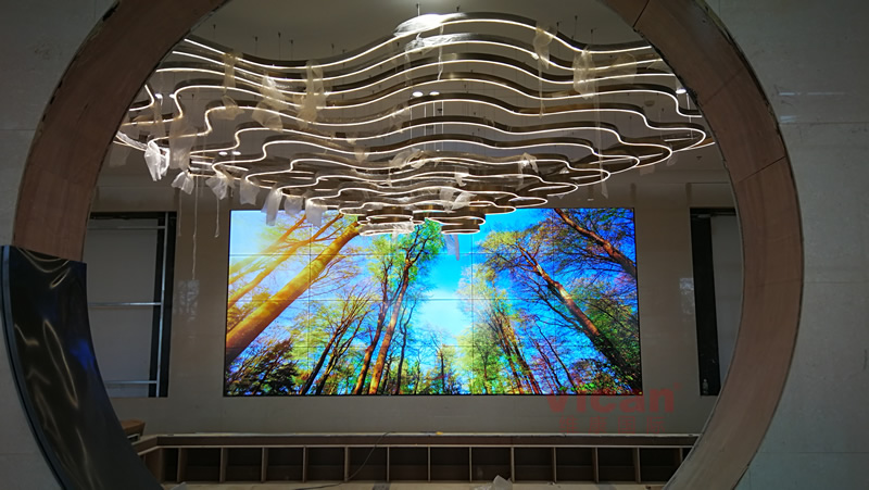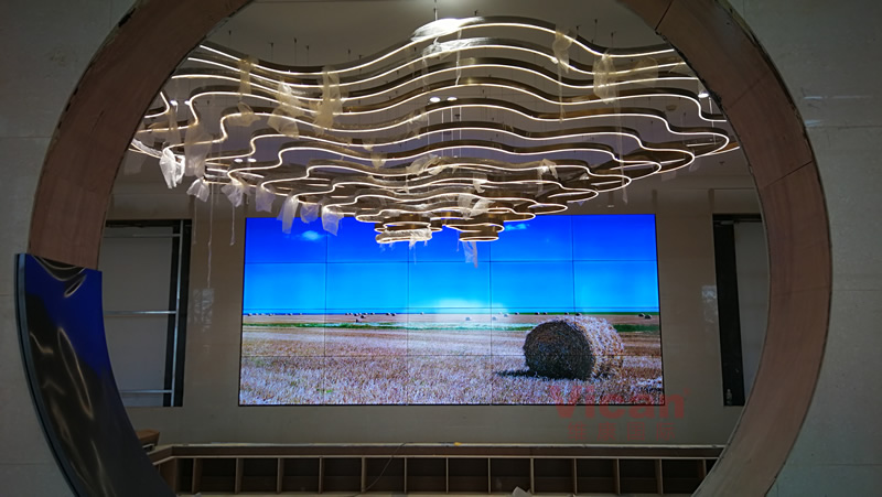 我公司為云南昆明某售樓中心提供的這套顯示大屏,采用4行5列、55寸拼接屏,雙邊拼縫僅有3.5mm,大屏幕畫面顯示清晰、亮麗,有著很好的一體化顯示效果,如上圖所示。