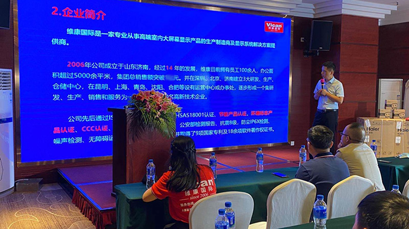 8月21日,維康國際新品發(fā)布會?昆明站于昆明市金泉大酒店三樓寶石廳隆重舉行。本次新品發(fā)布會與維康國際昆明運(yùn)營中心云南索特科技有限公司共同承辦,會議以科技賦能,合作共贏為主題,維康國際攜2K/4K視頻同步顯示技術(shù)、分布式大屏顯示系統(tǒng)解決方案、COB小間距產(chǎn)品、0mm無縫拼接屏等新產(chǎn)品及新技術(shù)解決方案到場,旨在讓更多的用戶全面了解公司新技術(shù)和服務(wù)。