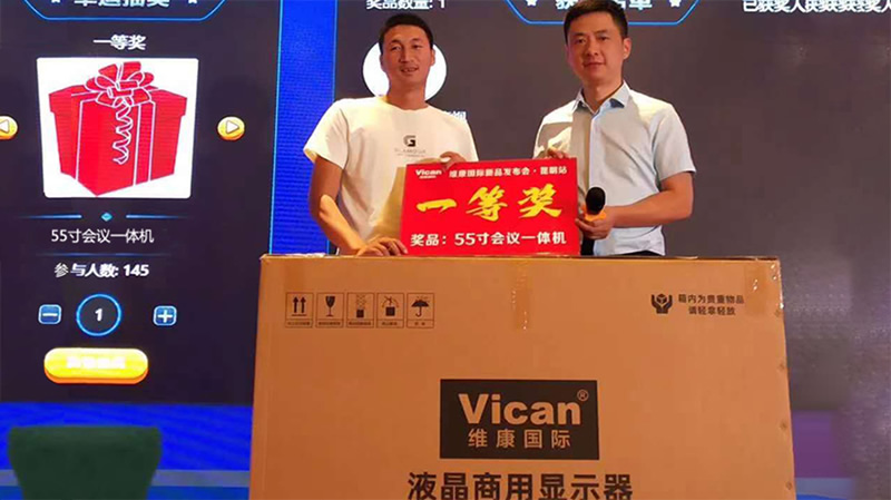 為更好的回饋新老客戶的支持與信任,在發(fā)布會過程中穿插進(jìn)行多次抽獎活動,使現(xiàn)場熱度更加火爆。設(shè)立的獎項(xiàng)分為一等獎:維康國際55寸智能會議平板;二等獎:海爾冰箱;三等獎:小度智能屏。