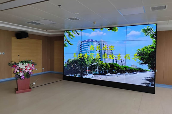 55寸液晶拼接屏:單屏尺寸為1213.4x684.2mm,4x4拼接后尺寸為220寸,總體長寬尺寸為4857x2740mm。