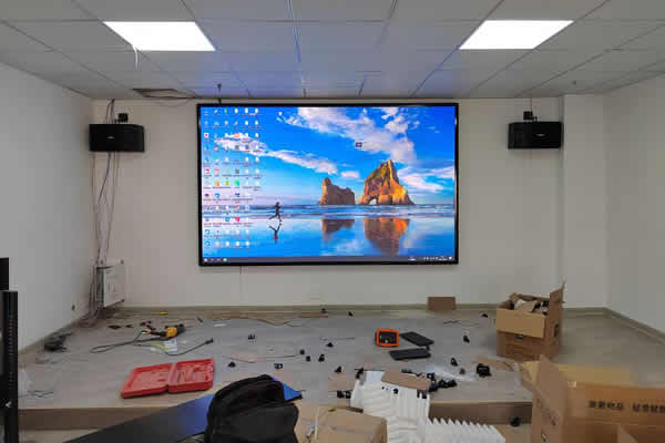 COB小間距LED顯示屏采用壓鑄鋁箱體式設(shè)計(jì),箱體比例16:9,支持前維護(hù)安裝。