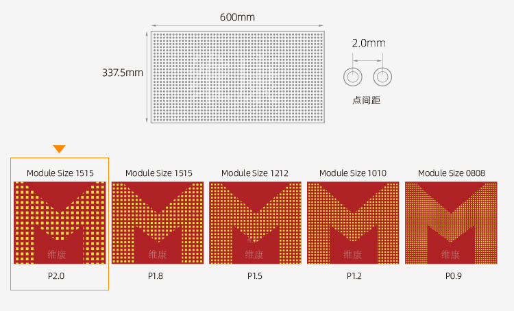 點(diǎn)間距只有2.0mm,采用SMD封裝而成,主要應(yīng)用于室內(nèi)全彩顯示大屏場(chǎng)合。