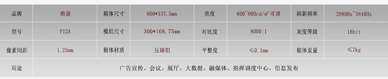 箱體尺寸600*337.5mm,為16:9比例,保證拼接時圖像不變形。亮度可調(diào),對比度高,灰度等級16bit,色彩豐富。