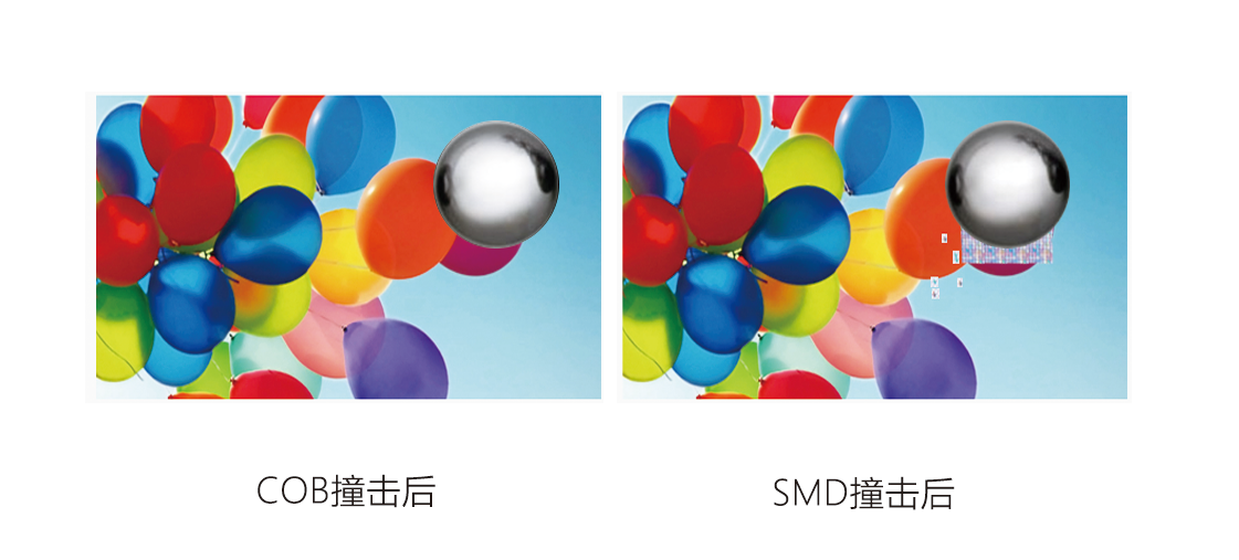 COB工藝相對(duì)于SMD的工藝的LED屏,防護(hù)性能級(jí)別更高??煞浪⒎揽呐?、防潮、防撞擊、防氧化、防鹽霧防靜電、易清洗等優(yōu)點(diǎn),大大減少了產(chǎn)品在運(yùn)輸、安裝和使用過程中因碰撞產(chǎn)生的死燈、接觸不良等問題。