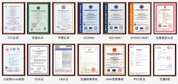 維康公司及液晶拼接屏產(chǎn)品均通過了ISO9001、ISO14001、OHSAS18001、強制3C、節(jié)能、環(huán)保、公安部檢測報告、CE、CB、FCC、ROHS等國內(nèi)外三十余項權威認證,在招投標項目中有優(yōu)勢。